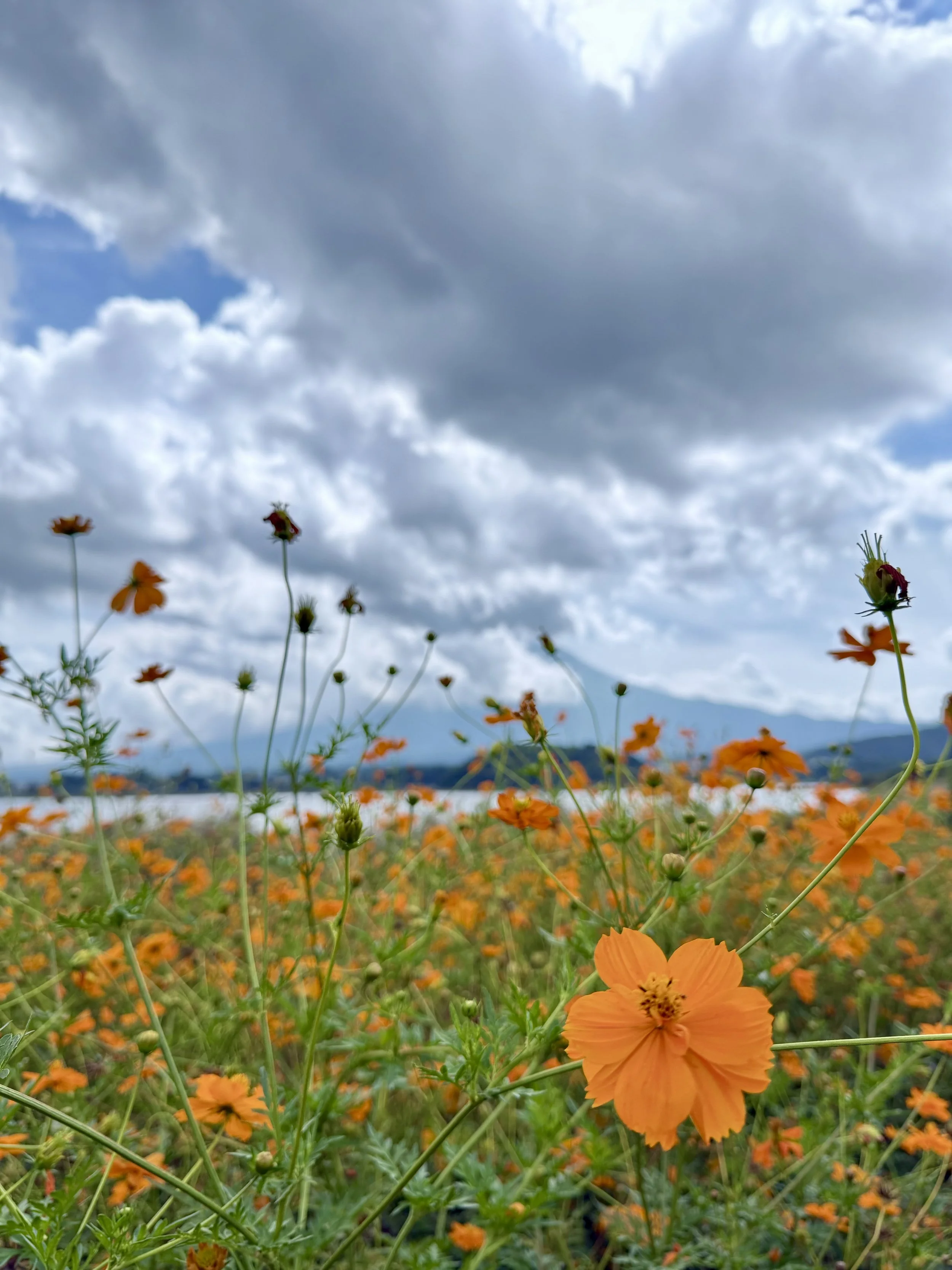We drove along the lakeshore to a small park with a perfect view: mountain + lake + soft drifting clouds. Japan’s tourism is buzzing these days — what I thought was a big crowd, my local friend assured me was nothing compared to peak season!